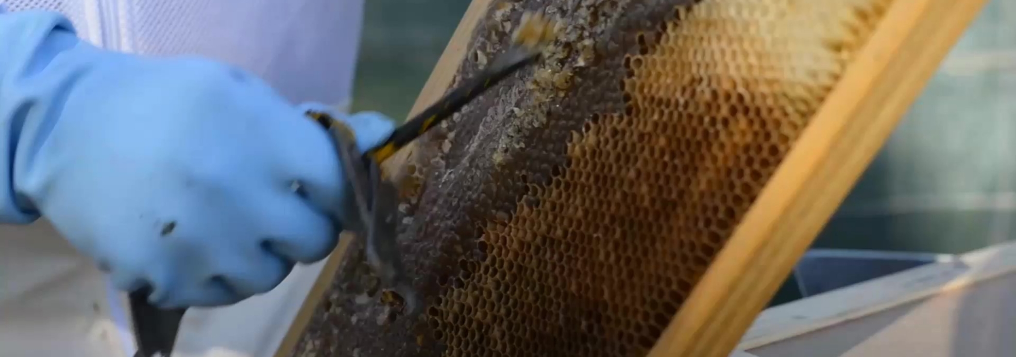 La récolte artisanale se fait avec délicatesse: miel, cire et propolis sont prélevés dans le respect des colonies et du produit.