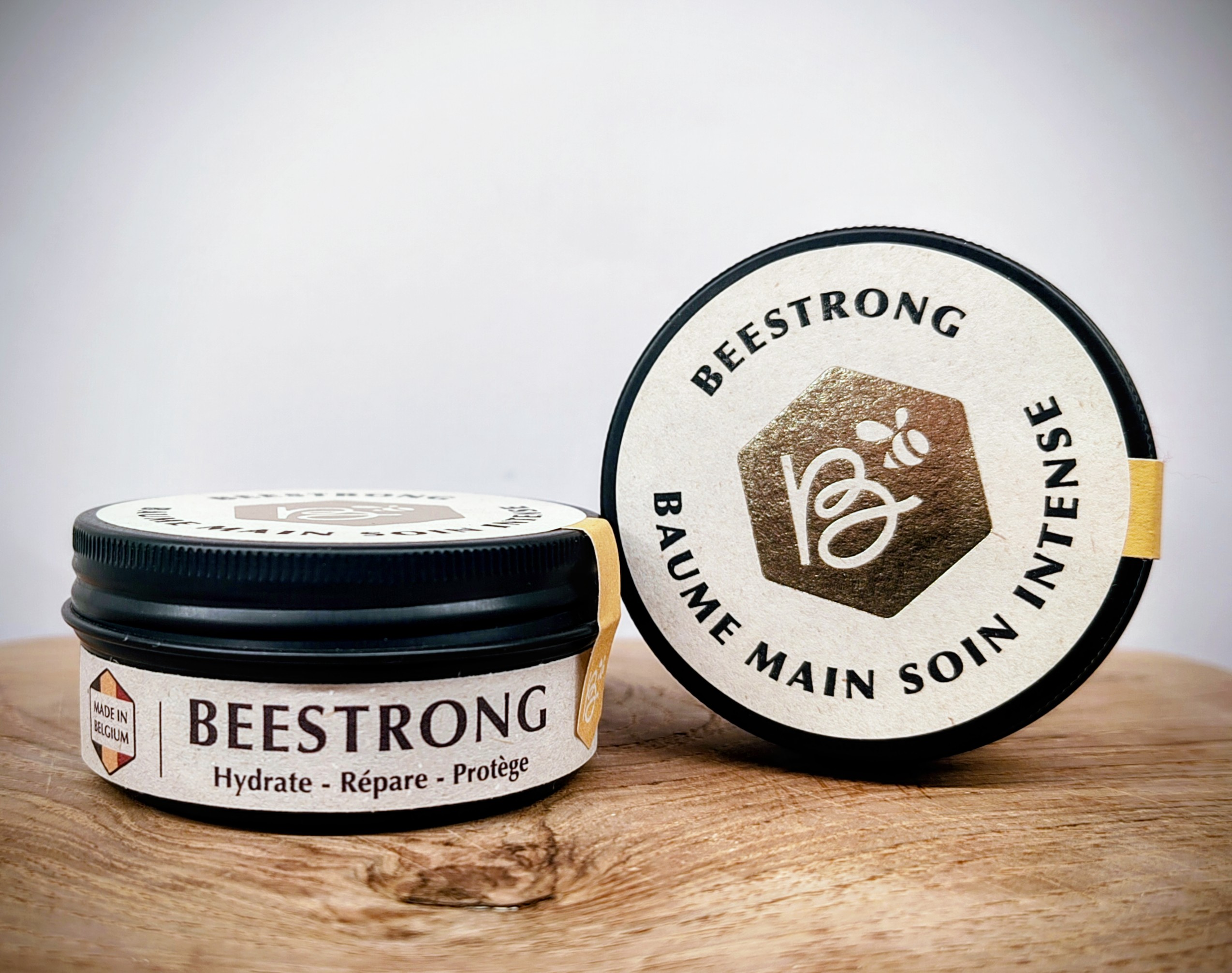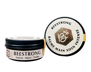 50ml 10,00 €BeeStrong — Le baume des mains exigeantes Conçu pour hydrater, assouplir et protéger, BeeStrong est le soin idéal pour les mains sèches, matures ou exposées aux agressions du quotidien (froid, lavages fréquents, travaux manuels…). Sa formule riche en cire d’abeille enveloppe la peau d’un voile nourrissant et réparateur, tout en douceur. Bien qu’il soit pensé pour les mains, BeeStrong peut s’appliquer sur toutes les zones du corps ayant besoin d’une hydratation intense.